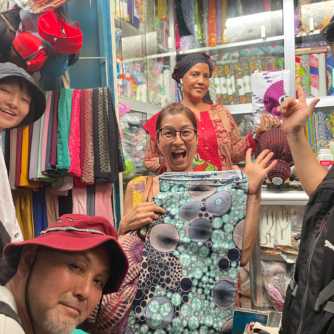 現地の職人さんたちと製作している、アフリカ布のお洋服・バッグ小物からジャンベ&アフリカン衣装。心軽やかになれるアイテムがいっぱいです。